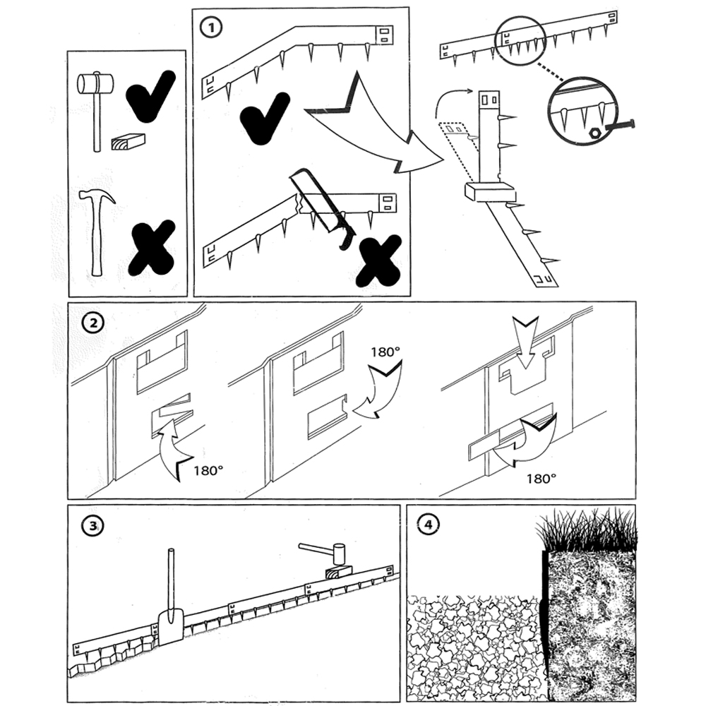 De Kantopsluiting MA Edge is te gebruiken om een mooie strakke borderrand te creëren. Door de punten aan de strips, zijn ze makkelijk en stevig te plaatsen. Makkelijk koppelbaar. De lengte van één strip is 106 cm en werkend 103 cm (twee strips zijn gekoppeld 206 cm). Hoogte van de strip, exclusief punten, 8 cm. Totaal 16 cm. Dikte 1,5 mm. Goed te buigen in een hoek of naar een ronding.