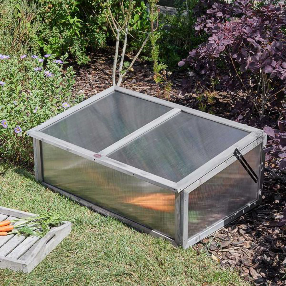Polycarbonaat zorgt voor een uitstekende vorstisolatie en een constante temperatuur voor een optimale plantengroei. Scharnierend deksel met 2 vergrendelingen zorgt voor gemakkelijke toegang. Dubbelwandige UV-bestendige polycarbonaat beglazing. Minimale montage vereist.1 x 0,65 x 0,4 m.Gemaakt van FSC® C126085-gecertificeerd hout