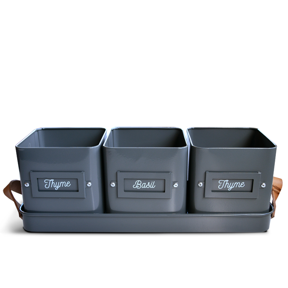 Kruidenpotjes 3st op tray koolzwart