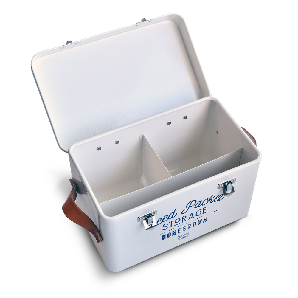 Dit prachtig ontworpen opslagblik is perfect voor het verzamelen, opslaan en organiseren van uw zaadpakketten. Dit mooie opbergblik is ontworpen om er in huis of schuur bijzonder stijlvol uit te zien. De trendy typografie en de natuurlijke lederen hengsels aan weerszijden geven dit blik een echt onderscheidend uiterlijk. Elegante rondingen zijn gecreëerd door een uniek vormproces, voor een onberispelijke, naadvrije afwerking. Het resultaat is onweerstaanbaar tactiel, met een zeer eigentijdse uitstraling. Prachtig als het is, dit opbergblik is ook heel praktisch. Twee sterke metalen klemmen houden het scharnierende deksel stevig gesloten en binnen zijn er drie aparte compartimenten om je collectie tuinschatten te helpen organiseren. Eén compartiment loopt zelfs in de lengterichting, waardoor zelfs de allerhoogste zaadpakketten een thuis krijgen. Gemaakt uit sterk staal met een stevige poedercoating, blijft dit opslagblik er jarenlang goed uitzien. Dit artikel komt uit de Garden Supplies-collectie van mooie, stijlvolle en praktische geschenken, diversen en opslagoplossingen voor tuinders