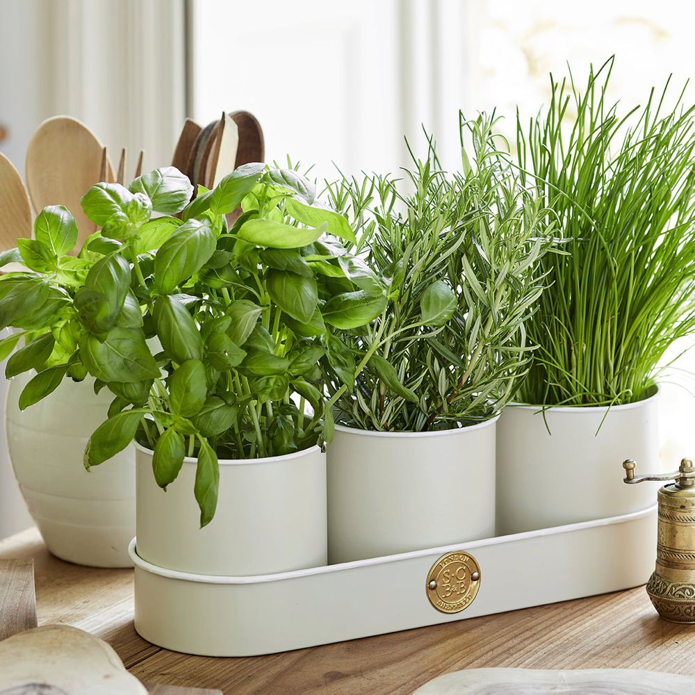 Zorg ervoor dat je altijd de perfecte kruiden bij de hand hebt, met deze stijlvolle set kruidenpotten die netjes op je vensterbank past. Ze zitten op een handig dienblad en kunnen gemakkelijk door de keuken worden verplaatst. Voor het gebruiksgemak zijn deze potten precies de juiste maat voor supermarktkruiden. De potten en onderzetter zijn gemaakt van gegalvaniseerd staal en hebben een slijtvaste matte poedercoating.