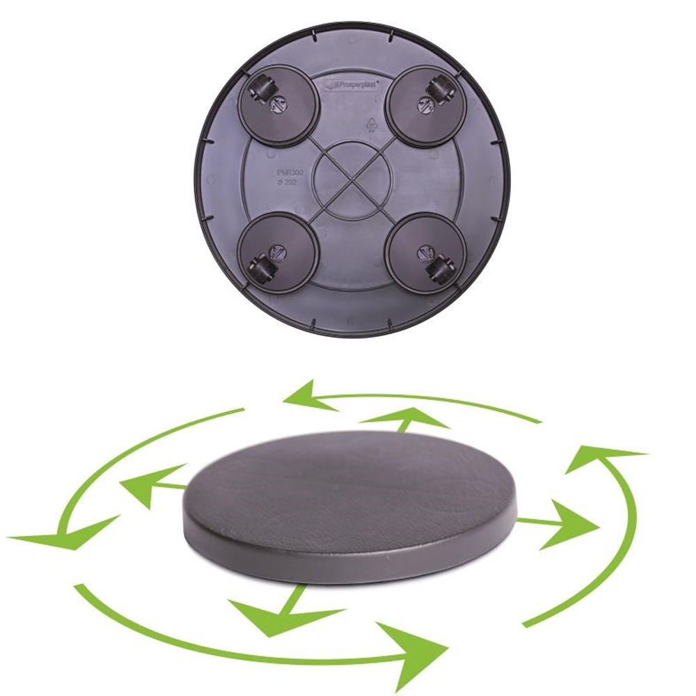 Kunststof trolley die naar meerdere kanten rijdbaar en draaibaar is.