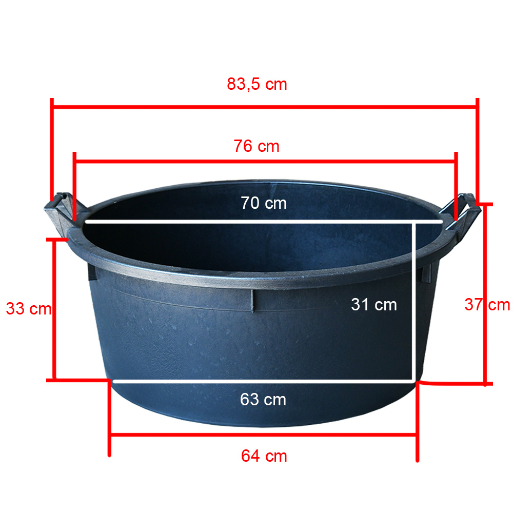 Multifunctionele flexibele stevige kuip die te gebruiken is als waterbak voor een waterornament en wanneer er gaten in geboord worden, zelfs als kweek of plantenbak. De grotere maten zijn ook mooi als kinderbadje of zandbak te gebruiken.