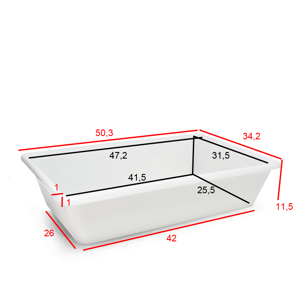 Witte kunststof bak die gebruikt kan worden als kweekbak, tijdelijke opvangbak bij het schoonmaken van een vijver of handige bak voor andere hobby, klus, tuin of kook doeleinden.